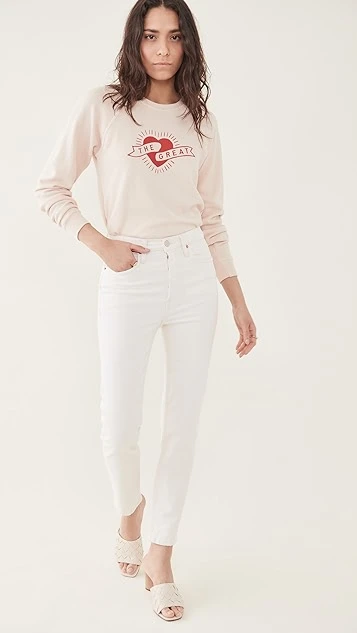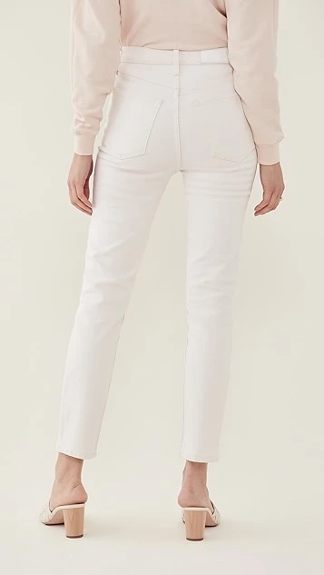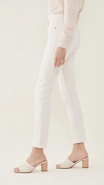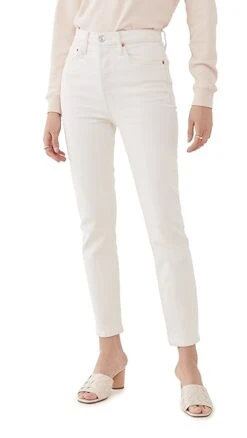 A casual pair of RE/DONE high-rise jeans in a timeless slim-straight silhouette and a bright-white wash that works well for warm-weather weekends.