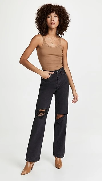 Black jeans always come in handy when you’re putting together a half-polished, half-casual look. This comfortably slouchy pair from RE/DONE features touches of distressing, but is still an appropriate go-with for your favorite blazer.