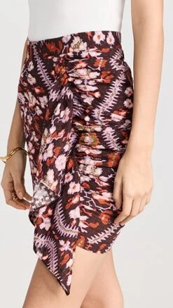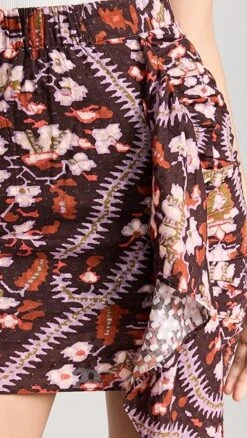 An elevated alternative to your usual cutoffs, this RHODE Hannah skirt draws the eye with vivid patterning and an asymmetrical arrangement of ruffles.