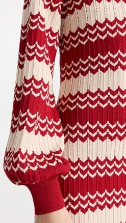 A chic option for transitional weather, this RIXO sweater dress in a soft ribbed knit features bold chevron stripes and a collared V neckline. Complete your look with a pair of clogs and hoop earrings.