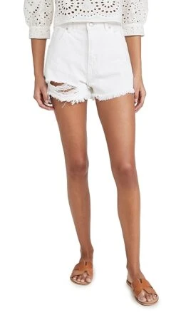 Ready for the warm-weather months in bright white denim, these Rolla’s shorts are must-have pair of cutoffs that come complete with an extra dose of distressing.