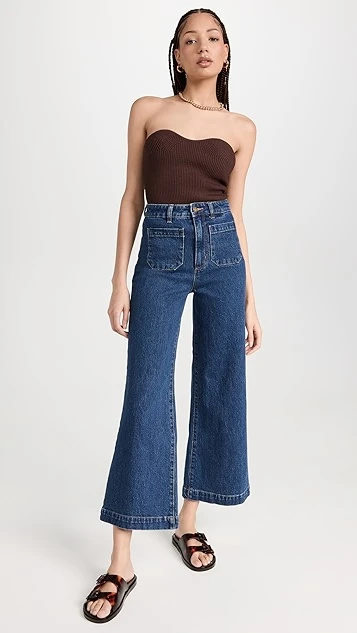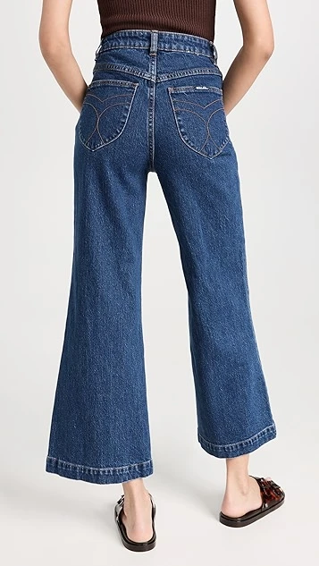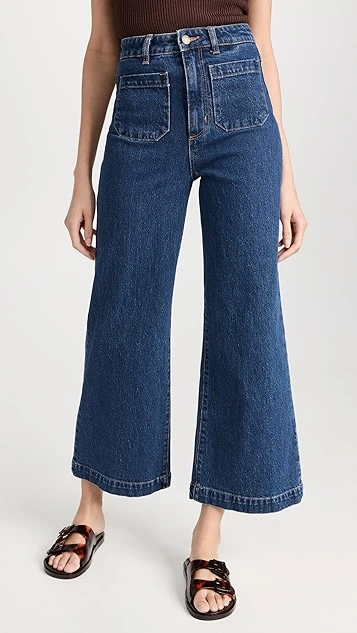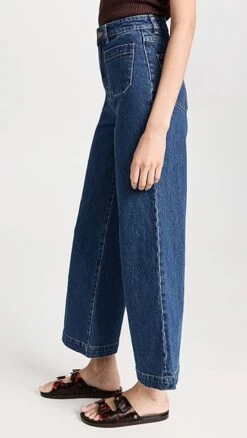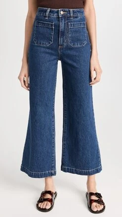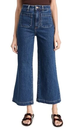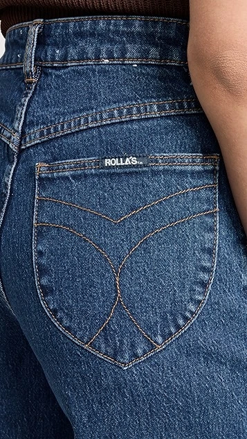A cool pair of Rolla’s jeans in a chic wide-leg silhouette, featuring a dark wash and outfitted with patch front pockets for a unique look.