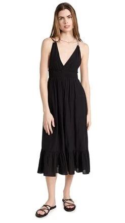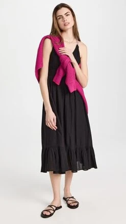 Texture-rich seersucker composes this Scotch & Soda black dress, which gains a touch of fun and unique style from multicolor braided shoulder straps.