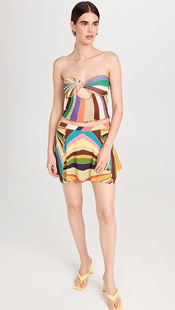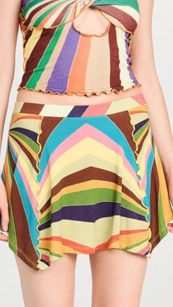 - Asymmetrical hem and ruffle trim