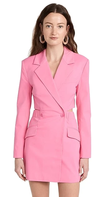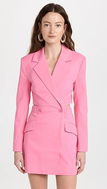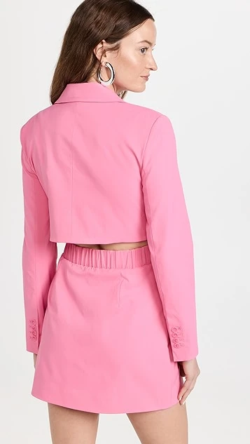 - Notched lapels and double-breasted button placket