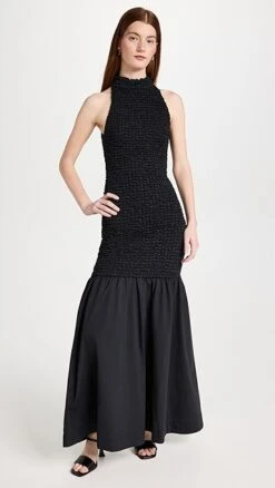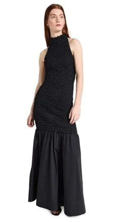 - Halter neckline and smocked elastic body