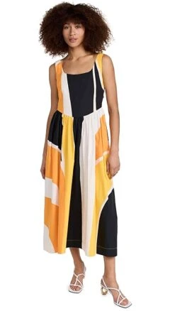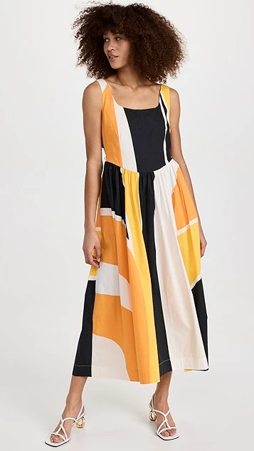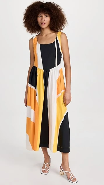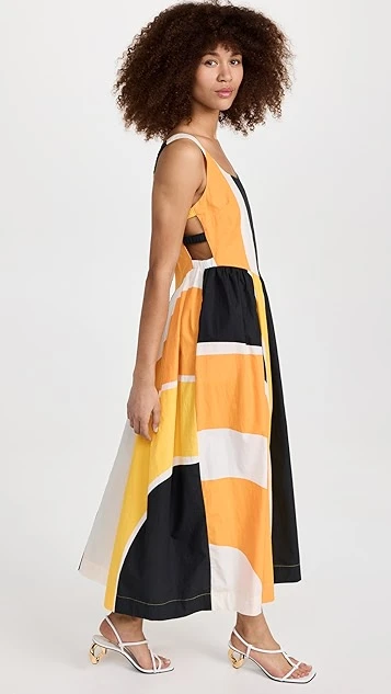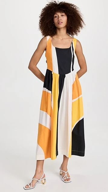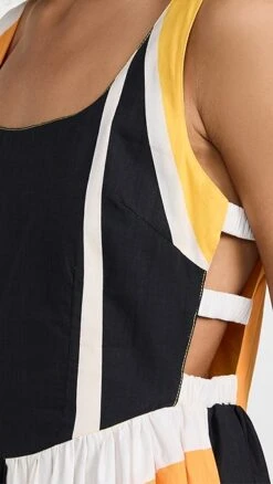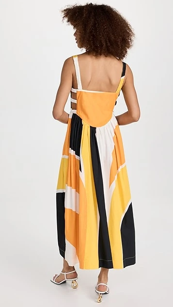 Two tone and sunshiny shades share the spotlight across this relaxed SWF dress, making it a striking choice for warm weather. Cutouts at the side lend a subtle touch of extra emphasis to the waist.