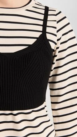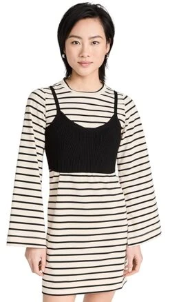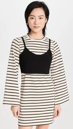 Unique and charming in equal measure, this striped Tanya Taylor dress is crafted from soft knit fabric, and gains a layered look from a bra top style overlay. Go with slide sandals or sneakers to complete your outfit.