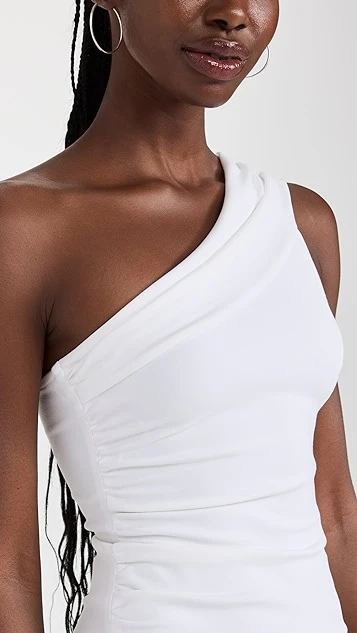 - Banded, one-shoulder neckline with gathered shoulder cuff