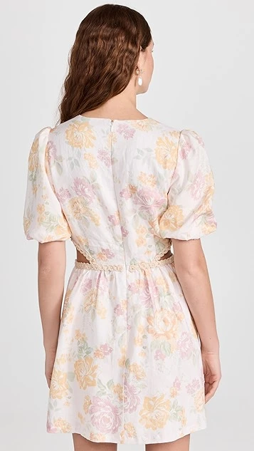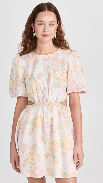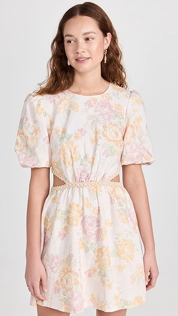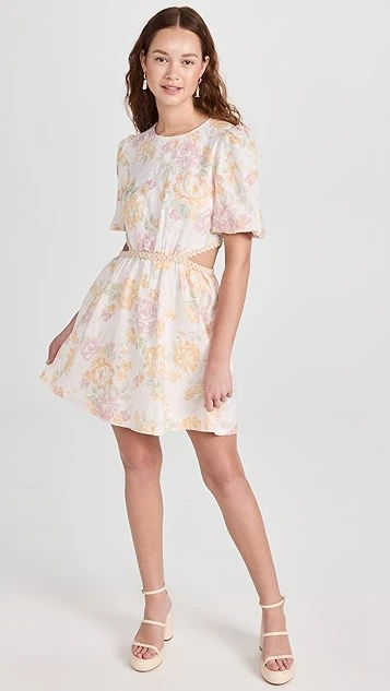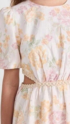 Pretty as a picture, this WAYF dress spotlights a pastel floral print, plus touches of braided trim that emphasize its waist and side cutouts. Drop earrings and light-colored heels are perfect go-withs for this piece.