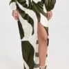 - Optional tie self-belt with linen floral appliques and petal accents