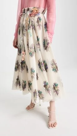 This voluminous Zimmermann skirt is packed with dreamy accents, like a delicately pleated waist, precise patterning, and soft faux-petal detailing. Wear yours with a blouse from the label’s collection, or just a favorite pullover.